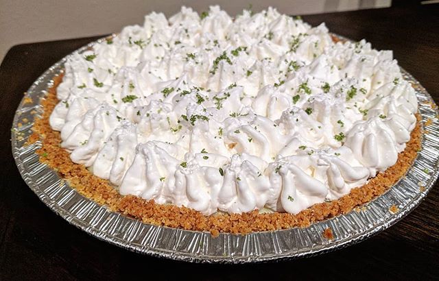 Sweetened key lime filling with graham cracker crust. Topped with vanilla flavored whipped cream.